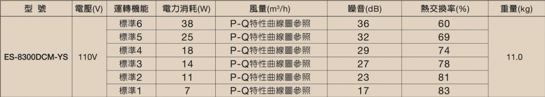 全熱活氧換氣機 ES-8300DCM-YS